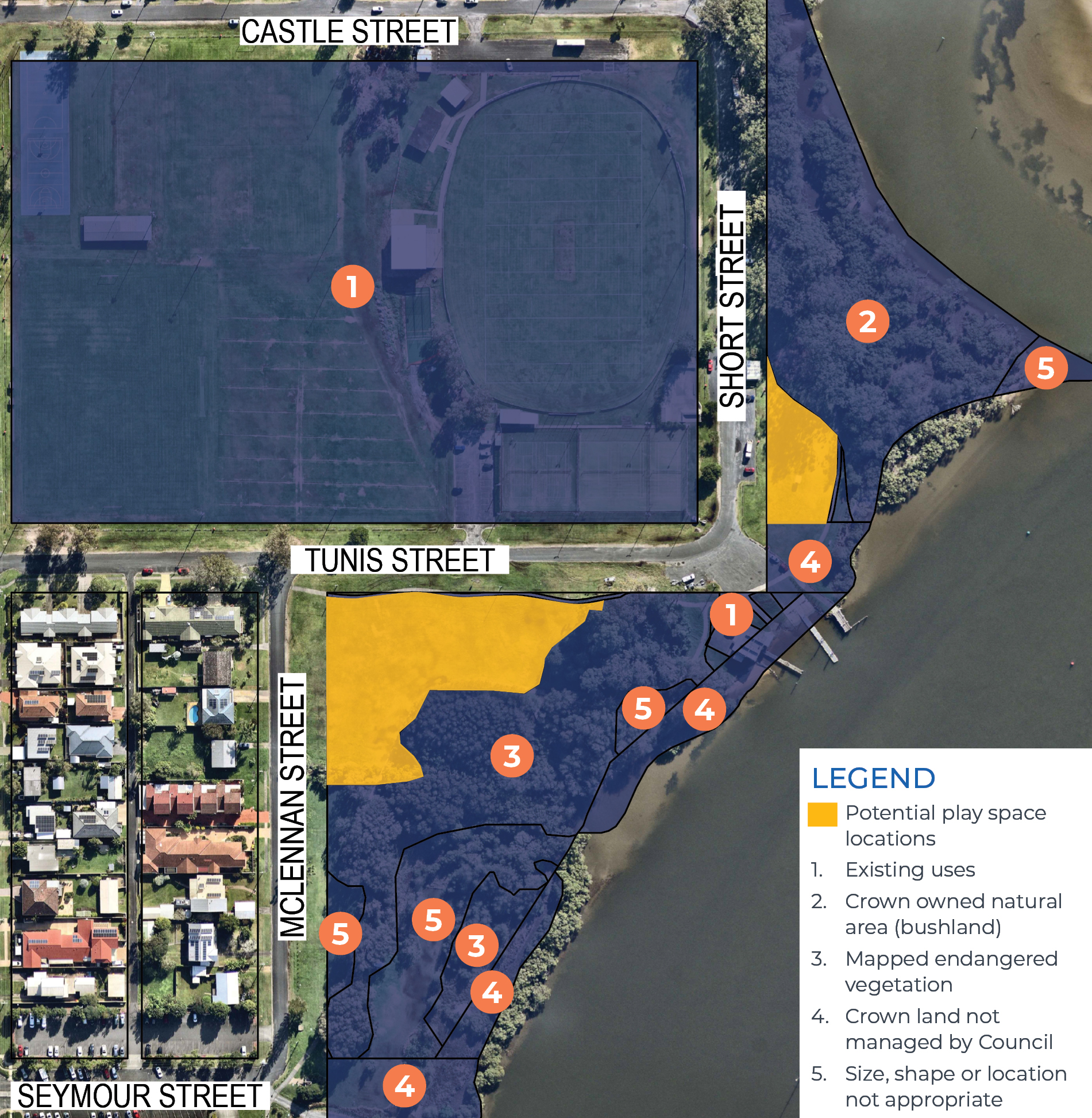 Laurie Street, Laurieton was initially identified as a potential location, however, the site is inappropriate for a play space due to its Aboriginal and European historical significance.